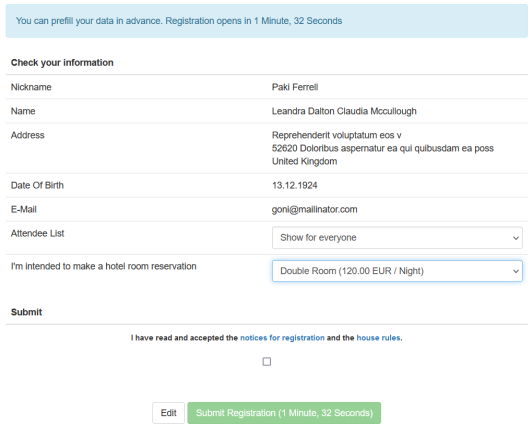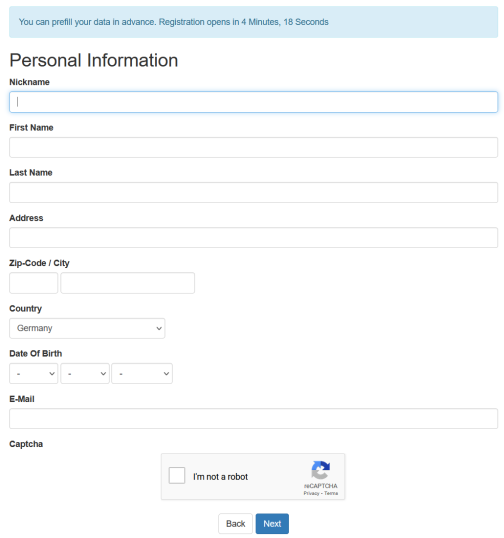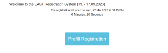30 minutes before registration opens, you already have the opportunity to fill in your data in advance. A button will then appear automatically (see picture)