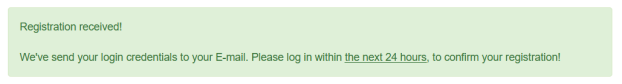 You will now receive a confirmation email with the access data in the next few minutes. You then have 24 hours to log in and confirm your registration. At this point, it does not matter whether you log in directly after receiving the email or an hour later. Either you can select a room in the system or you cannot. If you do not register within the 24 hours, your room reservation will automatically expire (if you had one) and go to the next person on the waiting list! Therefore, make sure you have entered your email address correctly . (For example, it should be @gmail.com - not .de!)
